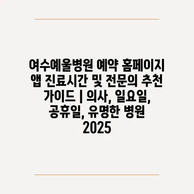 여수예울병원 예약 홈페이지 앱 진료시간 및 전연락 추천 설명서 | 의사, 일요일, 공휴일, 유명한 병원 2025에 대해 소개합니다.
