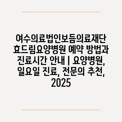 여수의료법인보듬의료재단 효드림요양병원 예약 방법과 진료시간 공지 | 요양병원, 일요일 진료, 전연락 추천, 2025 에 대해 자주 묻는 질문 TOP 5