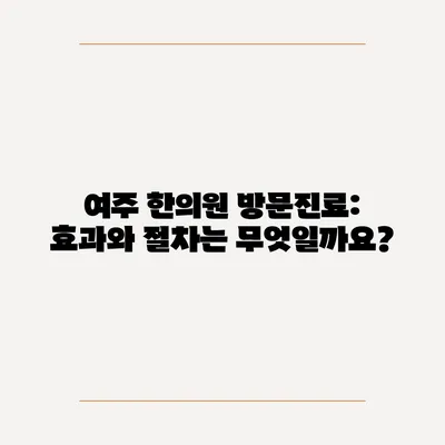 여주 한의원 방문진료: 효과와 절차는 무엇일까요?