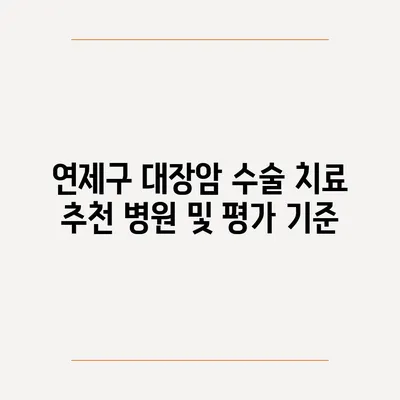 연제구 대장암 수술 치료 추천 병원 및 평가 기준