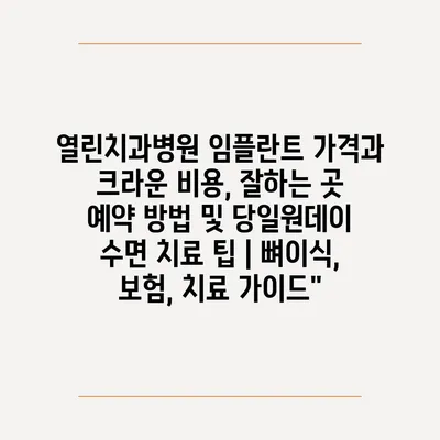 열린치과병원 임플란트 가격과 크라운 비용, 잘하는 곳 예약 방법 및 당일원데이 수면 치료 팁 | 뼈이식, 보험, 치료 설명서”에 대해 자주 묻는 질문 TOP 5