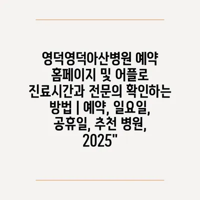 영덕영덕아산병원 예약 홈페이지 및 어플로 진료시간과 전연락 확인하는 방법 | 예약, 일요일, 공휴일, 추천 병원, 2025에 대해 알아보겠습니다.