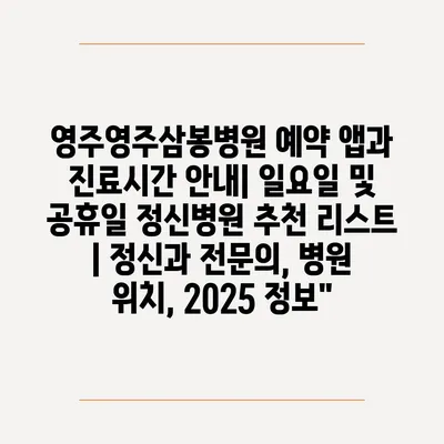 영주영주삼봉병원 예약 앱과 진료시간 공지| 일요일 및 공휴일 정신병원 추천 리스트 | 정신과 전연락, 병원 위치, 2025 정보 에 대해 자주 묻는 질문 TOP 5