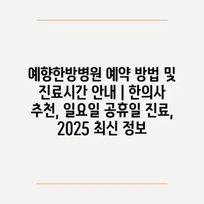 예향한방병원 예약 방법 및 진료시간 공지 | 한의사 추천, 일요일 공휴일 진료, 2025 최신 정보 에 대해 자주 묻는 질문 TOP 5