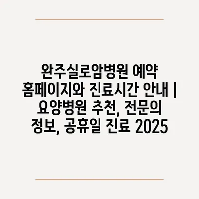 완주실로암병원 예약 홈페이지와 진료시간 공지 | 요양병원 추천, 전연락 정보, 공휴일 진료 2025에 대해 자주 묻는 질문 TOP 5