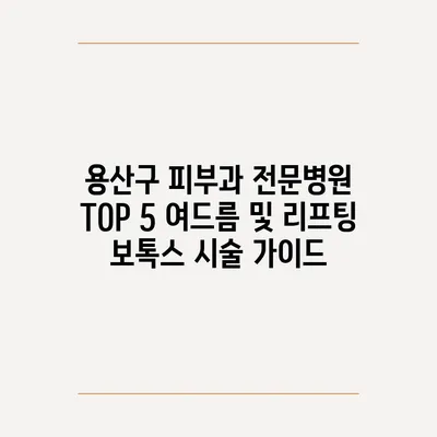 용산구의 여드름, 리프팅, 보톡스 시술 전문 병원을 소개합니다. TOP 5 피부과에서 최고의 피부 관리를 경험해보세요.