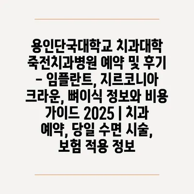 용인단국대학교 치과대학 죽전치과병원 예약 및 후기 – 임플란트, 지르코니아 크라운, 뼈이식 정보와 비용 설명서 2025 | 치과 예약, 당일 수면 시술, 보험 적용 정보