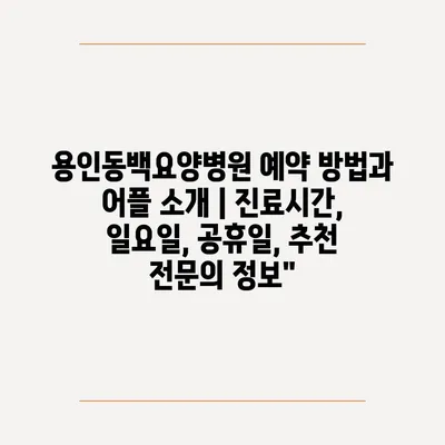 용인동백요양병원 예약 방법과 어플 소개 | 진료시간, 일요일, 공휴일, 추천 전문의 정보”