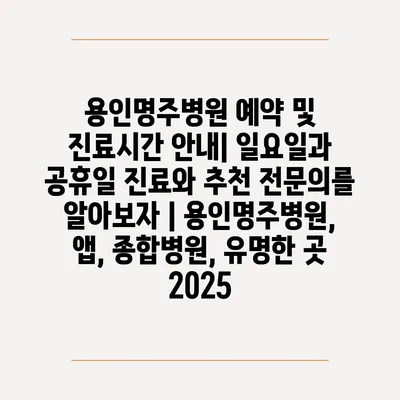 용인명주병원 예약 및 진료시간 공지| 일요일과 공휴일 진료와 추천 전연락를 알아보자 | 용인명주병원, 앱, 종합병원, 유명한 곳 2025 에 대해 자주 묻는 질문 TOP 5