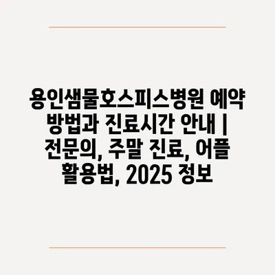 용인샘물호스피스병원 예약 방법과 진료시간 공지 | 전연락, 주말 진료, 어플 활용법, 2025 정보에 대해 자주 묻는 질문 TOP 5
