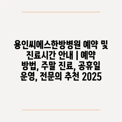 ✅ 용인씨에스한방병원의 진료시간과 예약방법을 자세히 알아보세요.
