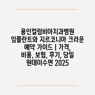 용인컬럼비아치과병원 임플란트와 지르코니아 크라운 예약 설명서 | 가격, 비용, 보험, 후기, 당일 원데이수면 2025 에 대해 자주 묻는 질문 TOP 5