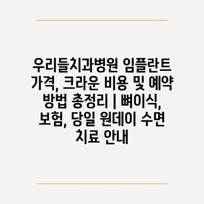 우리들치과병원 임플란트 가격, 크라운 비용 및 예약 방법 총정리 | 뼈이식, 보험, 당일 원데이 수면 치료 공지에 대해 알아보겠습니다.