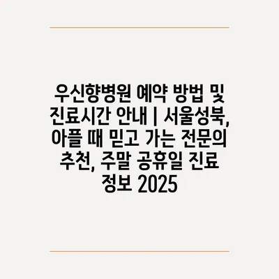 우신향병원 예약 방법 및 진료시간 공지 | 서울성북, 아플 때 믿고 가는 전연락 추천, 주말 공휴일 진료 정보 2025
