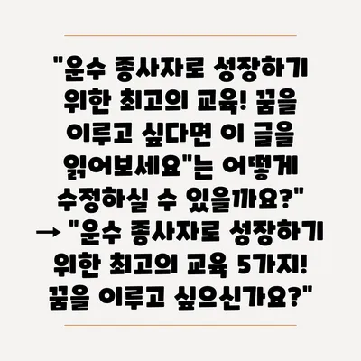 “운수 종사자로 성장하기 위한 최고의 교육! 꿈을 이루고 싶다면 이 글을 읽어보세요”는 어떻게 수정하실 수 있을까요?”