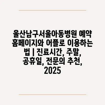 울산남구서울아동병원 예약 홈페이지와 어플로 이용하는 법 | 진료시간, 주말, 공휴일, 전연락 추천, 2025 에 대해 자주 묻는 질문 TOP 5