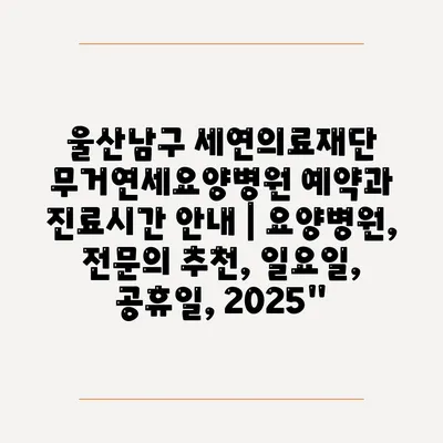 울산남구 세연의료재단 무거연세요양병원 예약과 진료시간 공지 | 요양병원, 전연락 추천, 일요일, 공휴일, 2025″ 에 대해 자주 묻는 질문 TOP 5