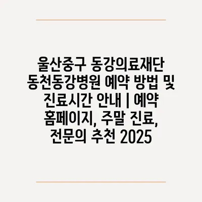 울산중구 동강의료재단 동천동강병원 예약 방법 및 진료시간 공지 | 예약 홈페이지, 주말 진료, 전연락 추천 2025 에 대해 자주 묻는 질문 TOP 5
