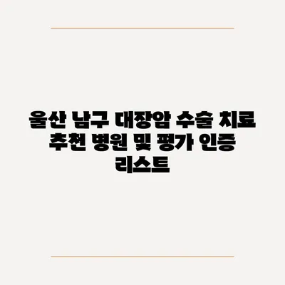 💡 울산 남구 대장암 수술 치료에 대한 자세한 정보를 지금 바로 알아보세요. 💡