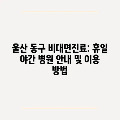 💡 울산 동구 비대면 진료 서비스와 예약 방법을 바로 알아보세요. 💡