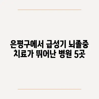 1. 은평구에서 급성기 뇌졸중 치료를 위해 어떤 병원을 선택해야 할까요?