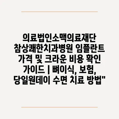 의료법인소맥의료재단 참상쾌한치과병원 임플란트 가격 및 크라운 비용 확인 가이드 | 뼈이식, 보험, 당일원데이 수면 치료 방법”