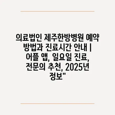 의료법인 제주한방병원 예약 방법과 진료시간 공지 | 어플 앱, 일요일 진료, 전연락 추천, 2025년 정보” 에 대해 자주 묻는 질문 TOP 5