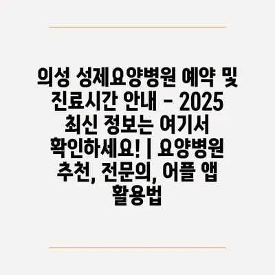 의성 성제요양병원 예약 및 진료시간 안내 – 2025 최신 정보는 여기서 확인하세요! | 요양병원 추천, 전문의, 어플 앱 활용법