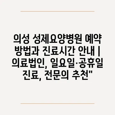 의성 성제요양병원 예약 방법과 진료시간 공지 | 의료법인, 일요일·공휴일 진료, 전연락 추천” 에 대해 자주 묻는 질문 TOP 5