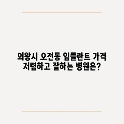 임플란트는 현대 치과 치료의 중요한 부분으로 자리 잡고 있습니다. 특히 의왕시 오전동에서 임플란트 가격이 싼 곳, 잘하는 병원들을 찾고 계신다면, 이 글이 많은 도움이 될 것입니다. 우리는 이 지역의 여러 치과를 소개하고, 임플란트 치료 시 주의 사항 및 의료 보험 적용에 대해 알아보겠습니다.