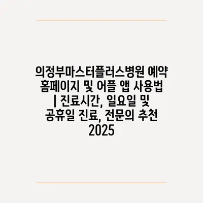 의정부마스터플러스병원 예약 홈페이지 및 어플 앱 사용법 | 진료시간, 일요일 및 공휴일 진료, 전연락 추천 2025에 대해 알아보겠습니다.