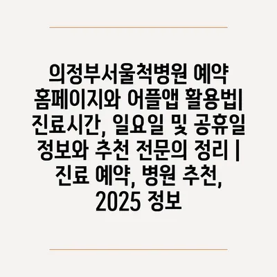 의정부서울척병원 예약 홈페이지와 어플앱 활용법| 진료시간, 일요일 및 공휴일 정보와 추천 전연락 정리 | 진료 예약, 병원 추천, 2025 정보 에 대해 자주 묻는 질문 TOP 5