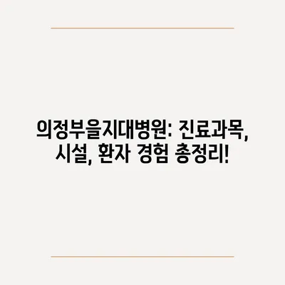 의정부을지대병원: 진료과목, 시설, 환자 경험 총정리!