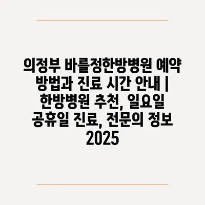 의정부 바를정한방병원 예약 방법과 진료 시간 공지 | 한방병원 추천, 일요일 공휴일 진료, 전연락 정보 2025