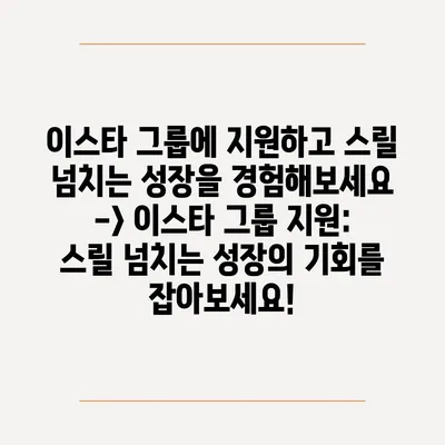 이스타 그룹에 지원하고 스릴 넘치는 성장을 경험해보세요 -> 이스타 그룹 지원: 스릴 넘치는 성장의 기회를 잡아보세요!
