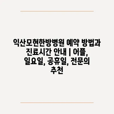 익산모현한방병원 예약 방법과 진료시간 공지 | 어플, 일요일, 공휴일, 전연락 추천 에 대해 자주 묻는 질문 TOP 5