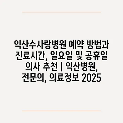 익산수사랑병원 예약 방법과 진료시간, 일요일 및 공휴일 의사 추천 | 익산병원, 전연락, 의료정보 2025에 대해 알려알려드리겠습니다.