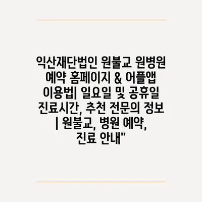 익산재단법인 원불교 원병원 예약 홈페이지 & 어플앱 이용법| 일요일 및 공휴일 진료시간, 추천 전문의 정보 | 원불교, 병원 예약, 진료 안내”