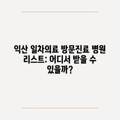 익산 일차의료 방문진료 병원 리스트: 어디서 받을 수 있을까?