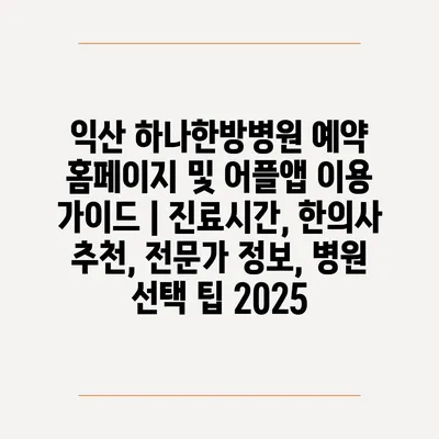 익산 하나한방병원 예약 홈페이지 및 어플앱 이용 설명서 | 진료시간, 한의사 추천, 전문가 정보, 병원 선택 팁 2025 에 대해 자주 묻는 질문 TOP 5