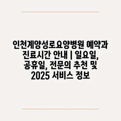 인천계양성로요양병원 예약과 진료시간 공지 | 일요일, 공휴일, 전연락 추천 및 2025 서비스 정보 에 대해 자주 묻는 질문 TOP 5