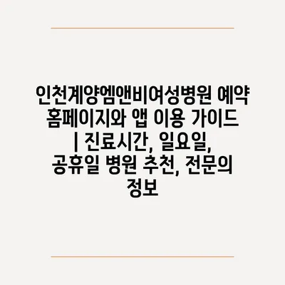 인천계양엠앤비여성병원 예약 홈페이지와 앱 이용 설명서 | 진료시간, 일요일, 공휴일 병원 추천, 전연락 정보 에 대해 자주 묻는 질문 TOP 5
