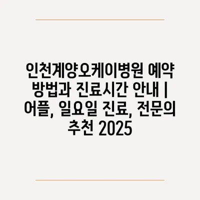 인천계양오케이병원 예약 방법과 진료시간 공지 | 어플, 일요일 진료, 전연락 추천 2025 에 대해 자주 묻는 질문 TOP 5