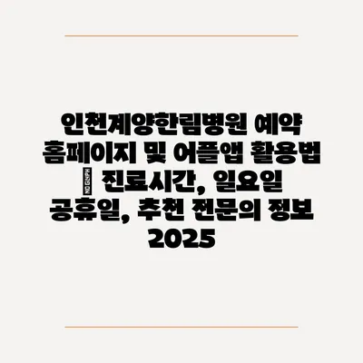 인천계양한림병원 예약 홈페이지 및 어플앱 활용법 | 진료시간, 일요일 공휴일, 추천 전연락 정보 2025에 대해 알아보겠습니다.