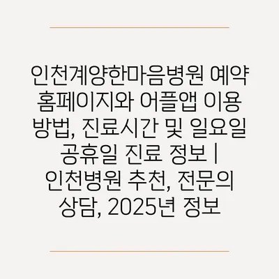 인천계양한마음병원 예약 홈페이지와 어플앱 이용 방법, 진료시간 및 일요일 공휴일 진료 정보 | 인천병원 추천, 전문의 상담, 2025년 정보