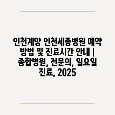 인천계양 인천세종병원 예약 방법 및 진료시간 공지 | 종합병원, 전연락, 일요일 진료, 2025