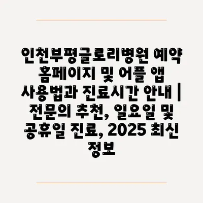 인천부평글로리병원 예약 홈페이지 및 어플 앱 사용법과 진료시간 공지 | 전연락 추천, 일요일 및 공휴일 진료, 2025 최신 정보 에 대해 자주 묻는 질문 TOP 5