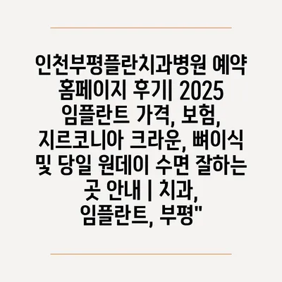 인천부평플란치과병원 예약 홈페이지 후기| 2025 임플란트 가격, 보험, 지르코니아 크라운, 뼈이식 및 당일 원데이 수면 잘하는 곳 공지 | 치과, 임플란트, 부평” 에 대해 자주 묻는 질문 TOP 5