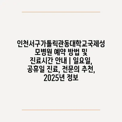 인천서구가톨릭관동대학교국제성모병원 예약 방법 및 진료시간 공지 | 일요일, 공휴일 진료, 전연락 추천, 2025년 정보 에 대해 자주 묻는 질문 TOP 5