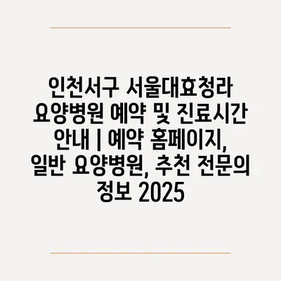인천서구 서울대효청라 요양병원 예약 및 진료시간 공지 | 예약 홈페이지, 일반 요양병원, 추천 전연락 정보 2025